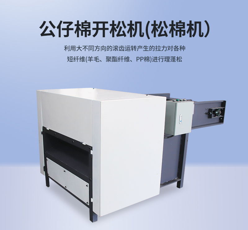 1.公仔棉開松機(jī)又名松棉機(jī),整機(jī)采用全封閉式,外形整齊美觀大方,自帶保護(hù)裝置,操作簡單安全可靠,吊運(yùn)安裝方便。