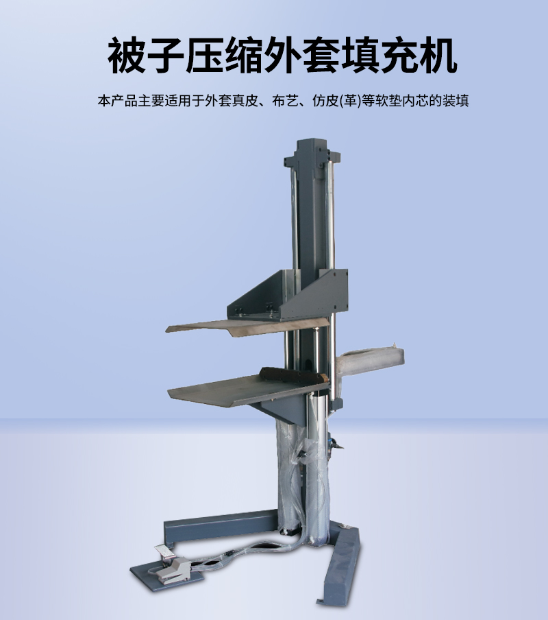 1.被子枕頭壓縮外套填充機(jī)適用于多個枕頭或者軟墊的壓縮套袋,針對于人工套袋費時費力而且套袋效果不平整的情況下,這款機(jī)器解決了以上難點。