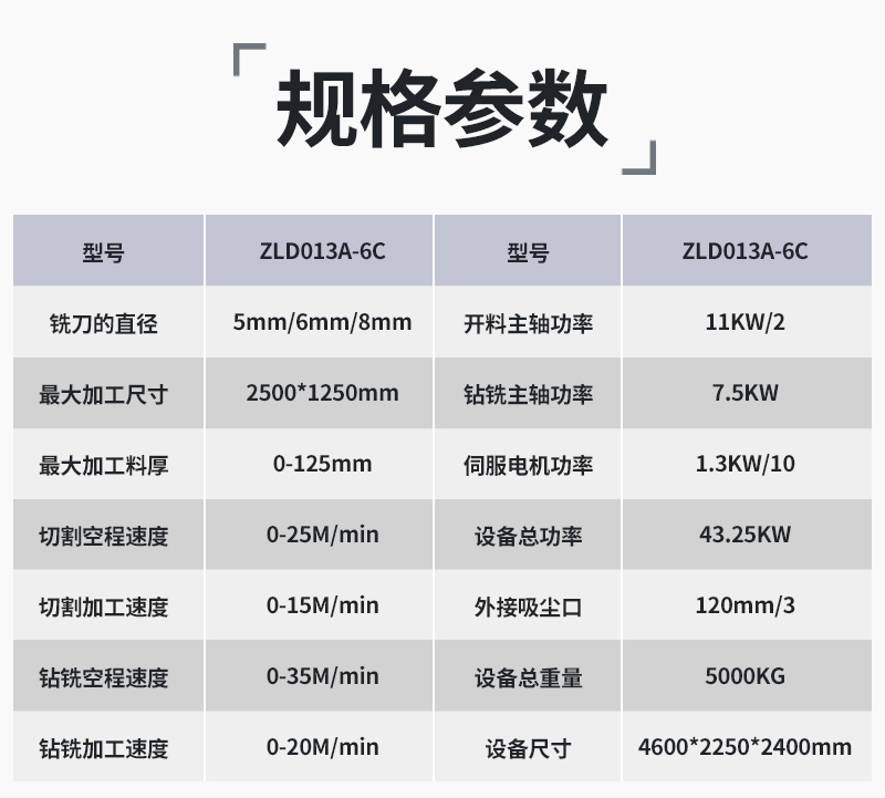 1.鉆銑CNC開料機采用進口高精度伺服電機和驅(qū)動器,確保切割精度達到土0.1mm,配備自動對刀裝置,實現(xiàn)快速精準(zhǔn)對刀,節(jié)省調(diào)機時間。