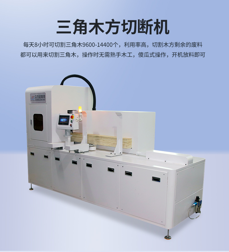 1.三角木方切斷機(jī),整機(jī)采用全封閉式,外形整齊美觀大方,自帶保護(hù)裝置,操作簡單安全可靠,吊運(yùn)安裝方便。