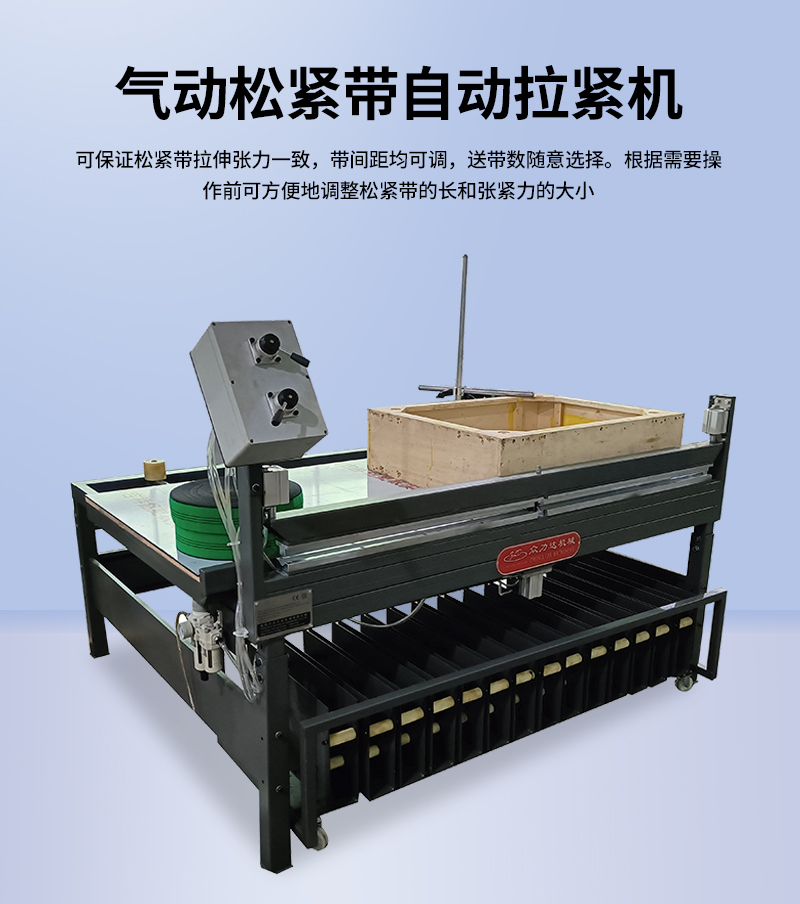 2.操作步驟:送帶(按鈕)、外側(cè)打釘、回拉(按鈕)、內(nèi)側(cè)打釘、割帶。3.有8條帶電動(dòng)式松緊帶自動(dòng)張緊機(jī)備選。