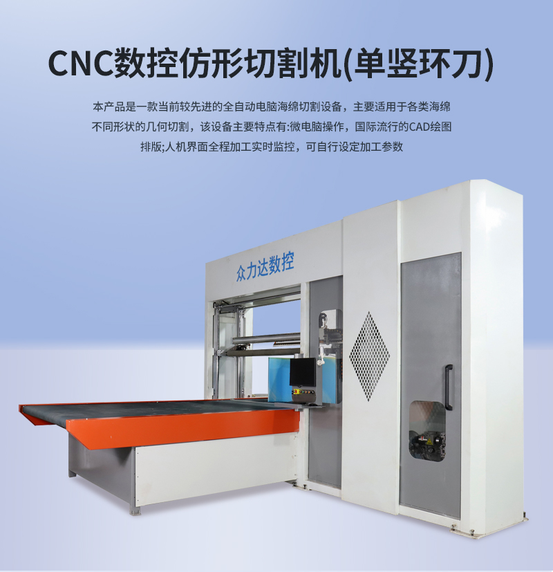 1.單豎循環(huán)刀數控海綿切割機通過電腦實現(xiàn)自動排版,全自動切割,可斷點加工,自動歸零,海綿損耗小,切割精度高。
