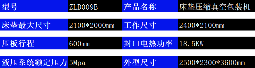 1.床墊真空壓縮包裝機主要針對海綿床墊以及大型沙發(fā)坐墊靠包進行真空壓縮并且封口的設備。2.該機器采用液壓動力,單邊封口,對于大型床墊的真空壓縮打包具有良好的效果,極大地減少包裝體積,減少運輸成本。