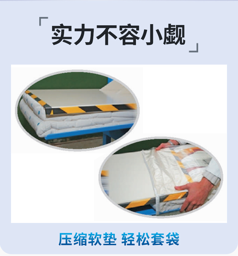 1.被子枕頭壓縮外套填充機(jī)適用于多個枕頭或者軟墊的壓縮套袋,針對于人工套袋費時費力而且套袋效果不平整的情況下,這款機(jī)器解決了以上難點。