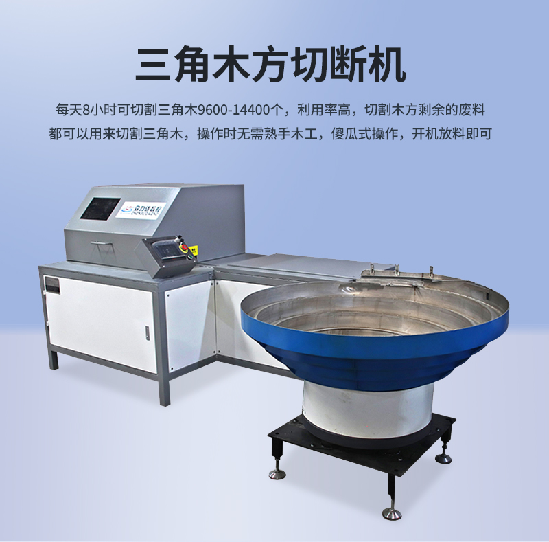 1.三角木方切斷機,整機采用全封閉式,外形整齊美觀大方,自帶保護裝置,操作簡單安全可靠,吊運安裝方便。